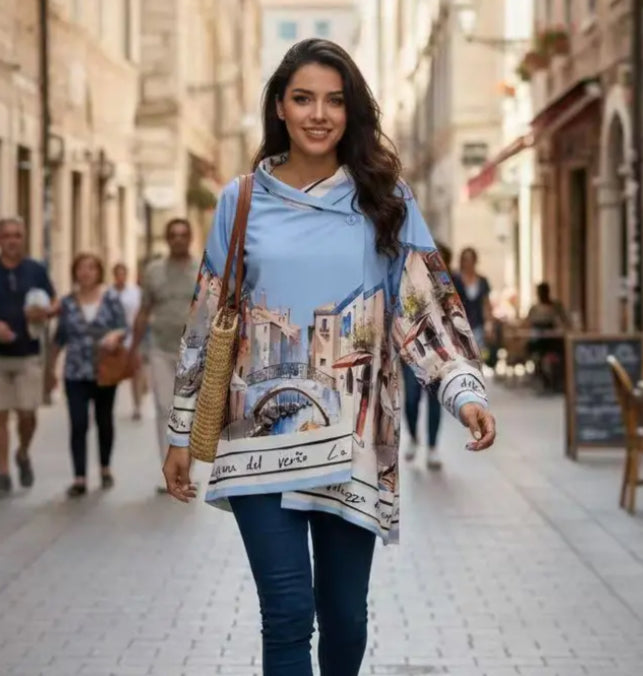SIDE TIE PRINT JACKET - 10-16 - BLUE