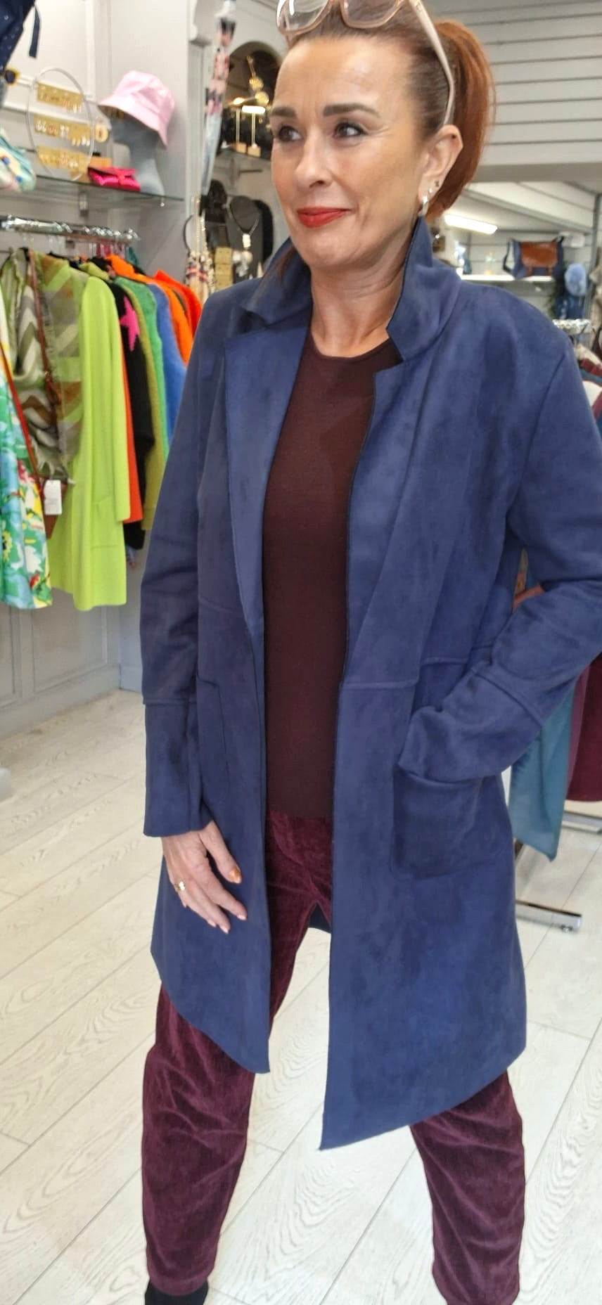 SUEDETTE OPEN JKT - 8-12/14- NAVY