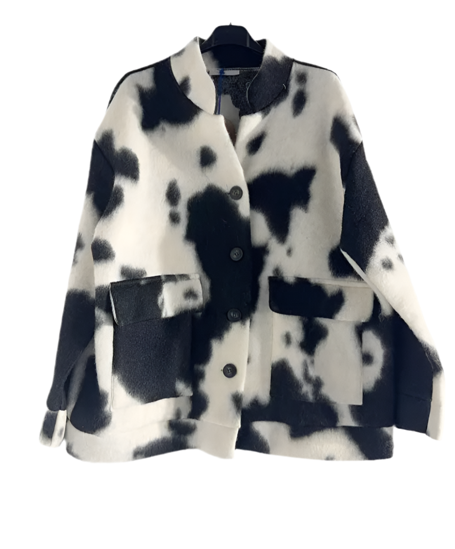 WOOL BLEND COW PRINT BUTTON COAT - 10-16 - BLACK